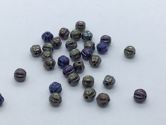 サイズ:直径約5mm 1セット 10個入り ◇◆◇◆◇◆◇◆◇◆◇◆◇◆◇◆◇◆◇ メロンラウンドは、丸いビーズに縦に筋のような凹凸のある形状です。 アクセサリー製作に使いやすい大きさです。 色味は不透明な焦げ茶系のメタリック調で、表面は玉虫色に光る特殊な加工となっています。 made in Czech ※写真をクリックすると大きくなります。 ◇◆◇◆◇◆◇◆◇◆◇◆◇◆◇◆◇◆◇ ※チェコビーズの特徴として、粒によりカッティングやコーディングなどに違いがあります。多少いびつでも不良品ではありませんので、ご了承の上お買い求め下さい。細かな色味やコーティングの指定は出来ません。 ※ご覧になる環境により、実物と写真では色あいが異なる場合があります。 ※ネーミングはカラーやイメージからつけられているものであり、その素材を示す物ではありません。