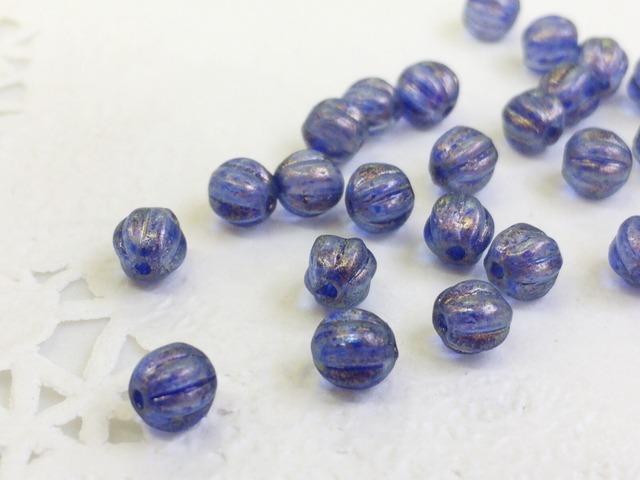 【メロンラウンド】1セット10個入り サイズ:直径約5mm ◇◆◇◆◇◆◇◆◇◆◇◆◇◆◇◆◇◆◇ メロンラウンドは、丸いビーズに縦に筋のような凹凸のある形状です。 アクセサリー製作に使いやすい大きさです。 ちょっと珍しい「ハロ」はスモーキーな透明感があり、独特の風合いがあります。 色味はブロンズがかって透け感のある落ち着いた濃いめの水色で、スモーキーな加工がなされています。 made in Czech ※写真をクリックすると大きくなります。 ※ 粒によりコーティングの度合い・色味の濃淡に違いがあります。 ◇◆◇◆◇◆◇◆◇◆◇◆◇◆◇◆◇◆◇ ※チェコビーズの特徴として、粒によりカッティングやコーディングなどに違いがあります。多少いびつでも不良品ではありませんので、ご了承の上お買い求め下さい。細かな色味やコーティングの指定は出来ません。 ※ネーミングはカラーやイメージからつけられているものであり、その素材を示す物ではありません。