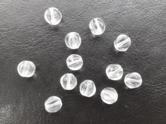 サイズ:直径約6mm 1セット 10個入り ◇◆◇◆◇◆◇◆◇◆◇◆◇◆◇◆◇◆◇ メロンラウンドは、丸いビーズに縦に筋のような凹凸のある形状です。 アクセサリー製作に非常に使いやすい大きさです。 色味は無色透明です。 ※made in Czech ※写真をクリックすると大きくなります。 ◇◆◇◆◇◆◇◆◇◆◇◆◇◆◇◆◇◆◇ ※チェコビーズの特徴として、粒によりカッティングやコーディングなどに違いがあります。多少いびつでも不良品ではありませんので、ご了承の上お買い求め下さい。細かな色味やコーティングの指定は出来ません。 ※ネーミングはカラーやイメージからつけられているものであり、その素材を示す物ではありません。
