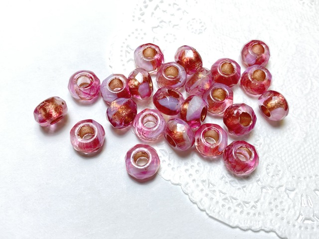 サイズ:6mm×9mm(通し穴 3mm) 【ローラー】 4個売り ◇◆◇◆◇◆◇◆◇◆◇◆◇◆◇◆◇◆◇ ローラービーズは、通し穴が3mmと大きく、そのままチェーンや革ひもを通せる形状です。 6mm×9mmサイズで、アクセサリー製作に使いやすい大きさです。 色味は、クリアなピンクと不透明な白が混ざっています。 穴の内側はブロンズカラーです。表面はカット加工されています。 ※写真をクリックすると大きくなります。 ※粒によりコーティングの度合い・色味の濃淡に大きな違いがあります。 ※made in Czech ◇◆◇◆◇◆◇◆◇◆◇◆◇◆◇◆◇◆◇ ※チェコビーズの特徴として、粒によりカッティングやコーディングなどに違いがあります。 細かな色味やコーティングの指定は出来ません。 ※ネーミングはカラーやイメージからつけられているものであり、その素材を示す物ではありません。