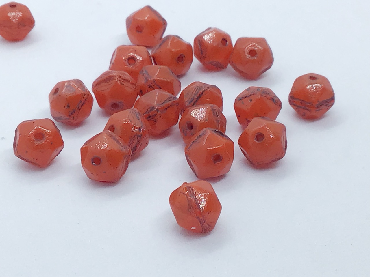 色味はほぼ不透明な濃いオレンジレッドで、中央やホール部分には黒っぽい筋が入っています。