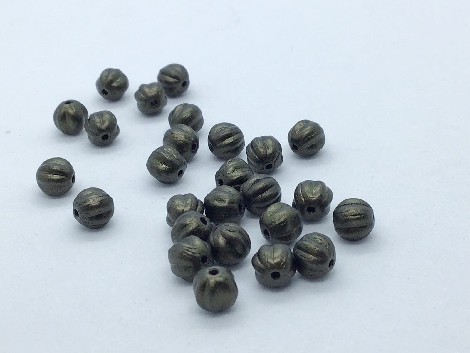 メロンラウンドは、丸いビーズに縦に筋のような凹凸のある形状です。