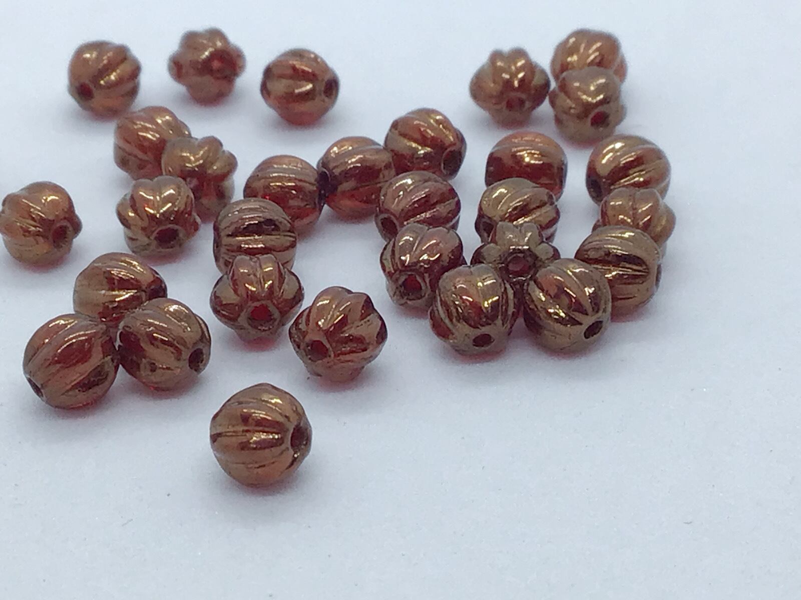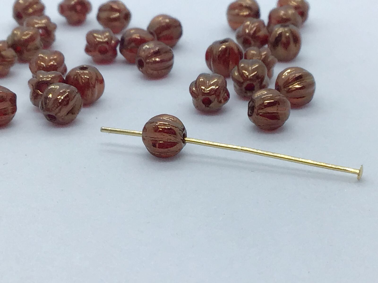 メロンラウンドは、丸いビーズに縦に筋のような凹凸のある形状です。