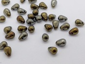 不透明で、焦げ茶ベースのメタリックなコーティングがなされていますが、粒によりアイアンカラーや赤、緑のようなカラーのMIXとなります。