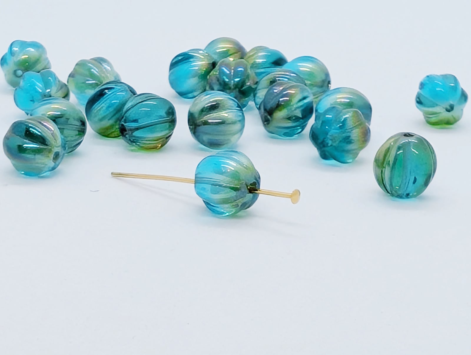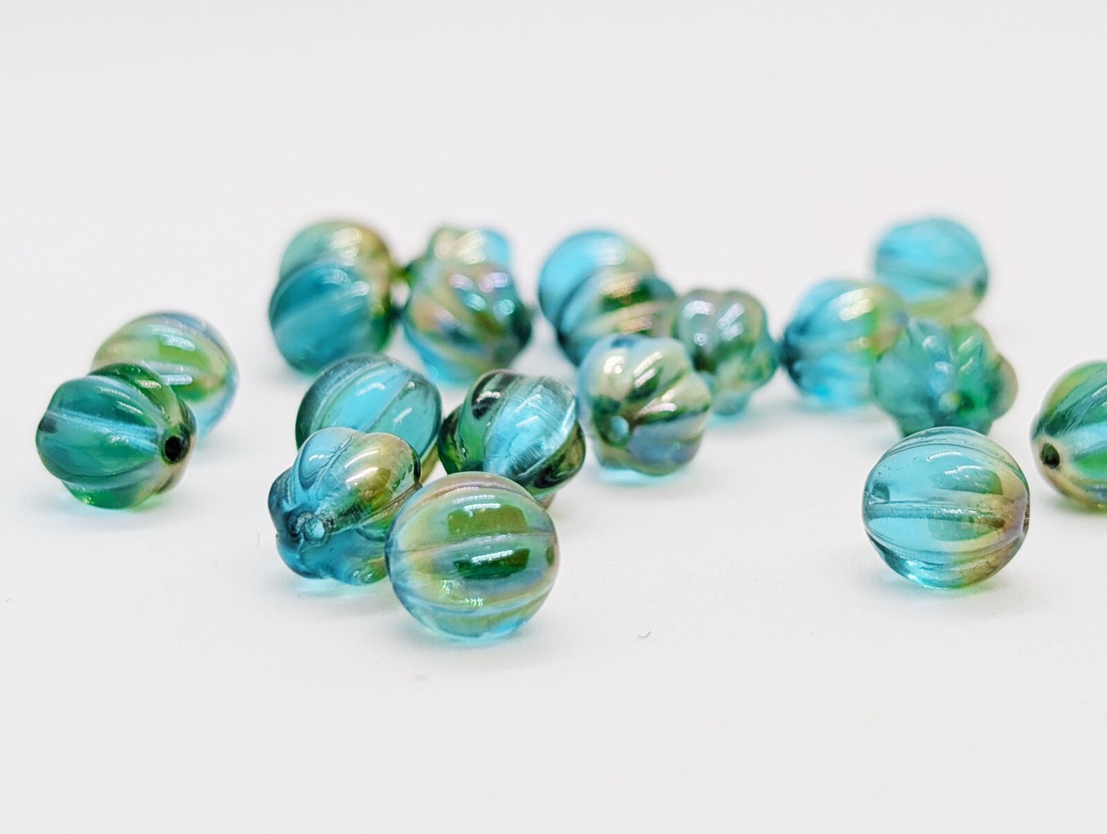 メロンラウンドは、丸いビーズに縦に筋のような凹凸のある形状です。