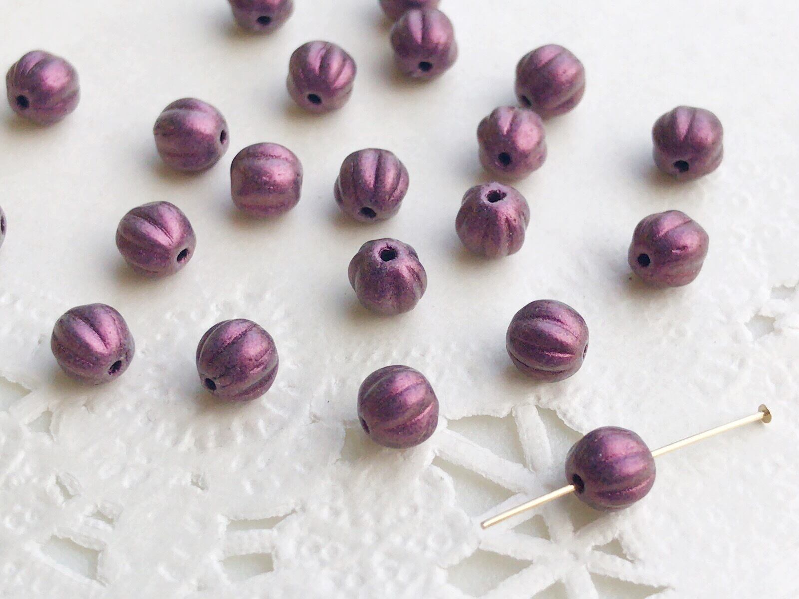メロンラウンドは、丸いビーズに縦に筋のような凹凸のある形状です。