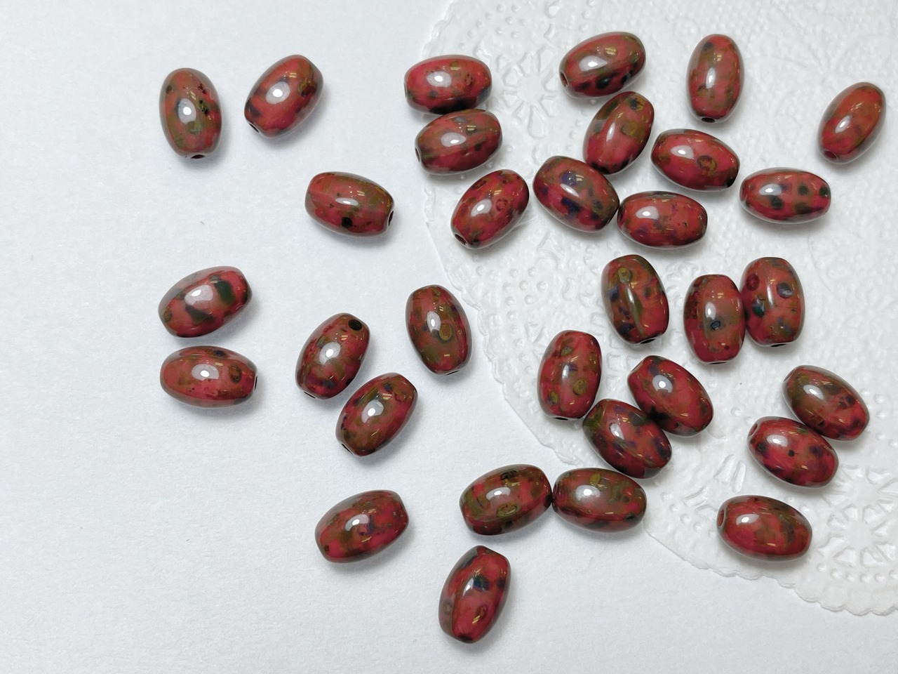 ※チェコビーズの特徴として、粒によりカッティングやコーディングなどに違いがあります。多少いびつでも不良品ではありませんので、ご了承の上お買い求め下さい。細かな色味やコーティングの指定は出来ません。