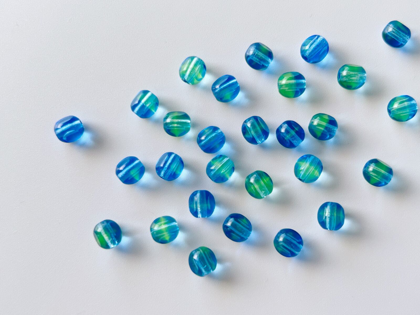 色味は、クリアなブルーに、明るめのグリーンがランダムに混ざり合っています。