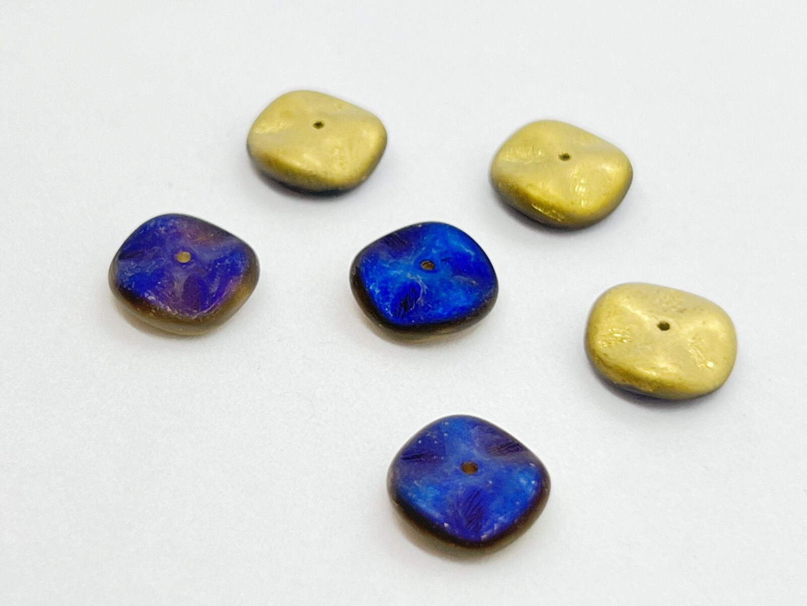 色味は不透明でくすんだブルー、片面の色味はゴールドとなっています。
