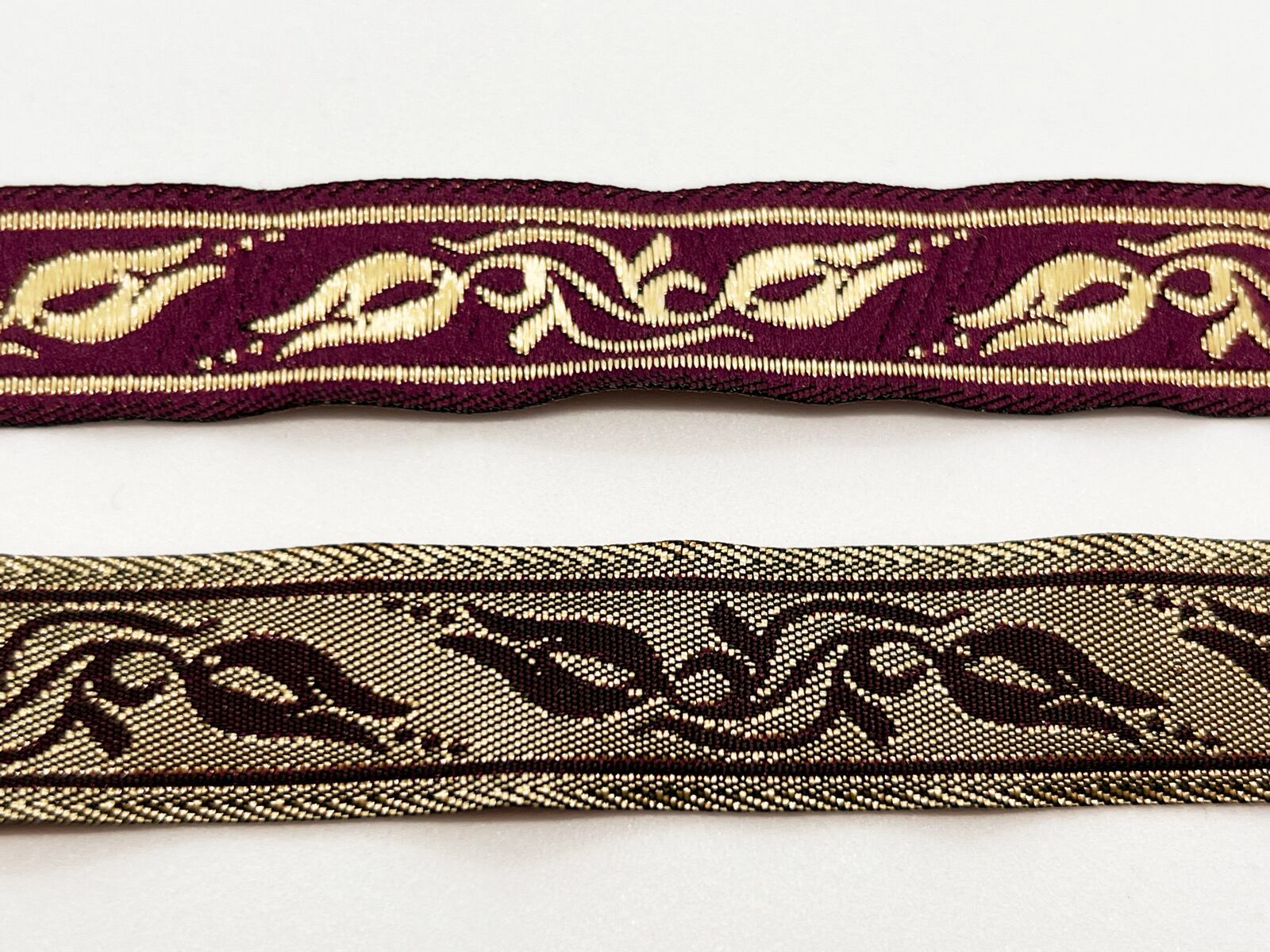 赤紫色にゴールドでチューリップの刺繍が入っています。