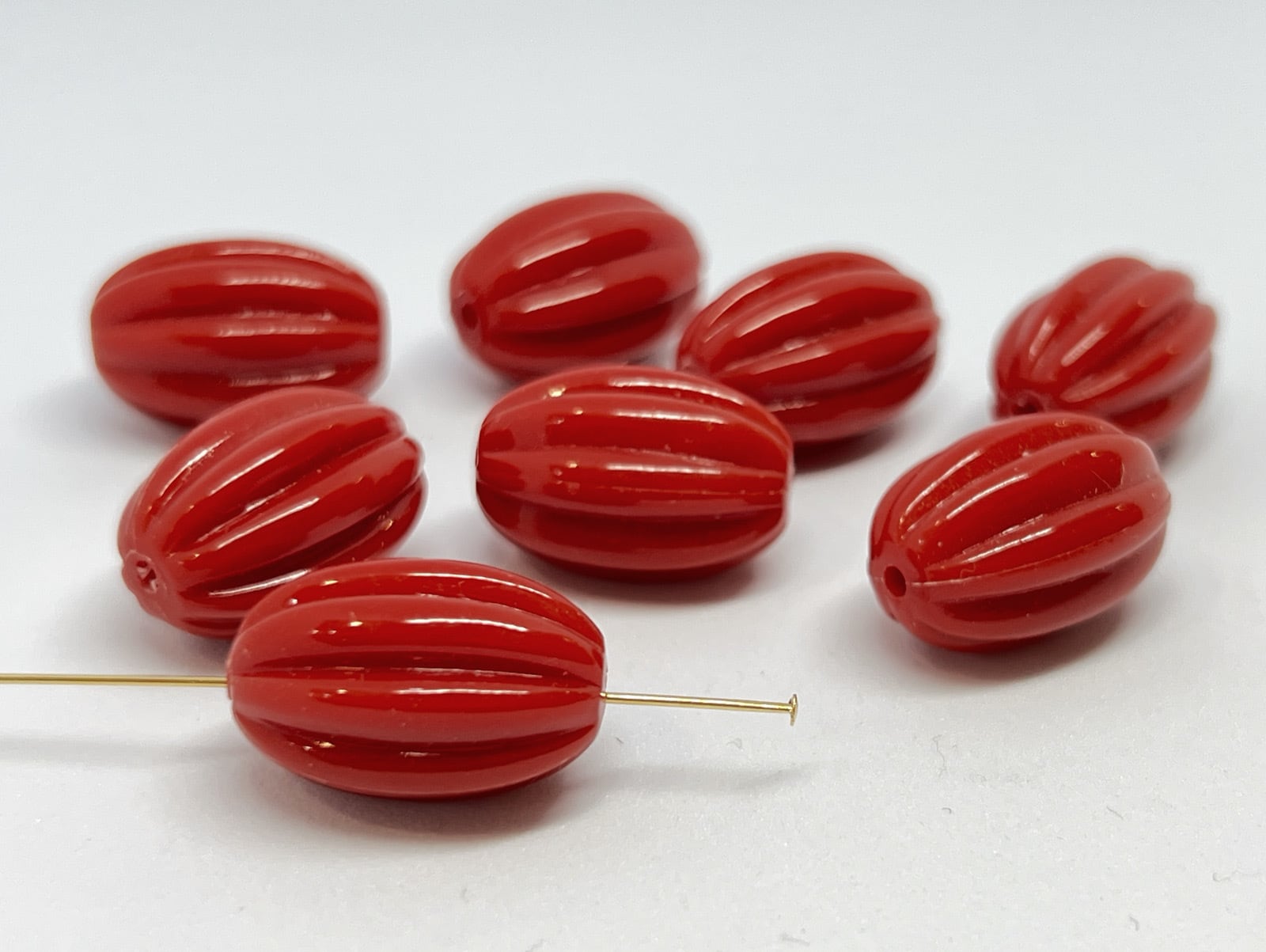 ラグビーボールのような形状で、メロンビーズのような筋が入っています。