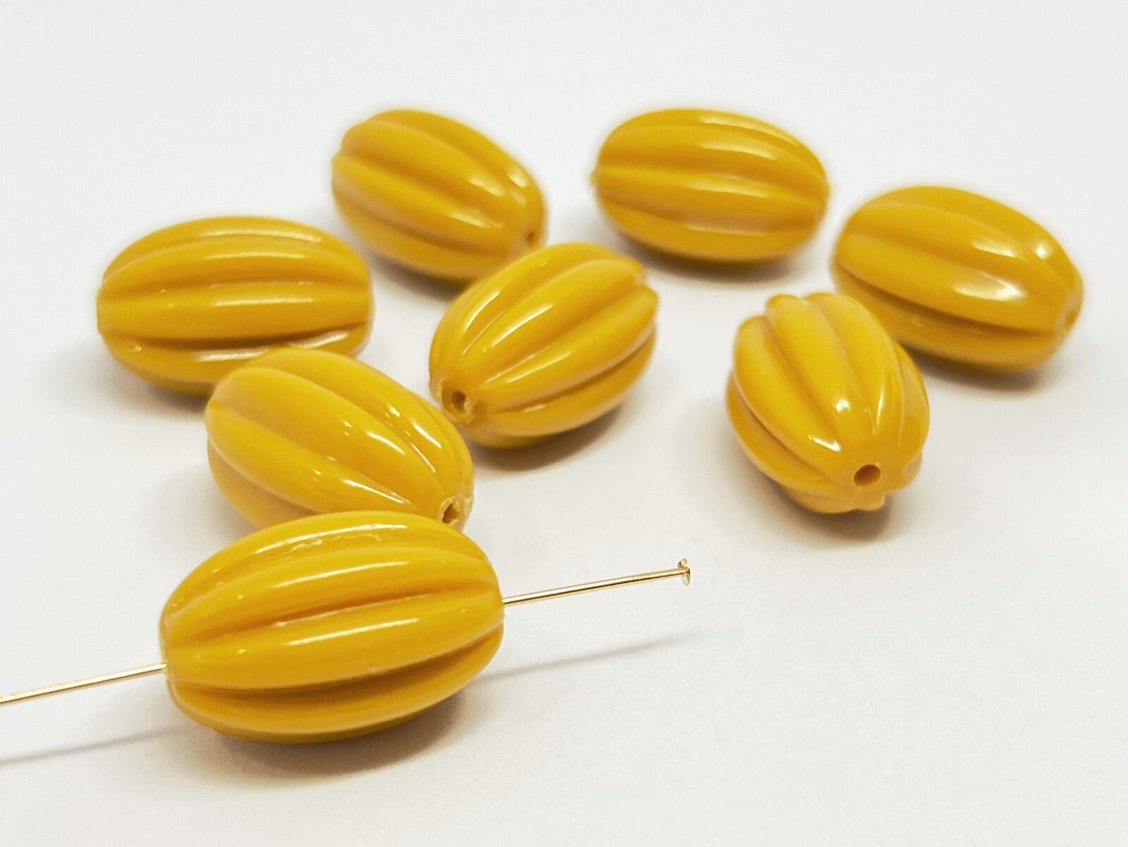 ラグビーボールのような形状で、メロンビーズのような筋が入っています。